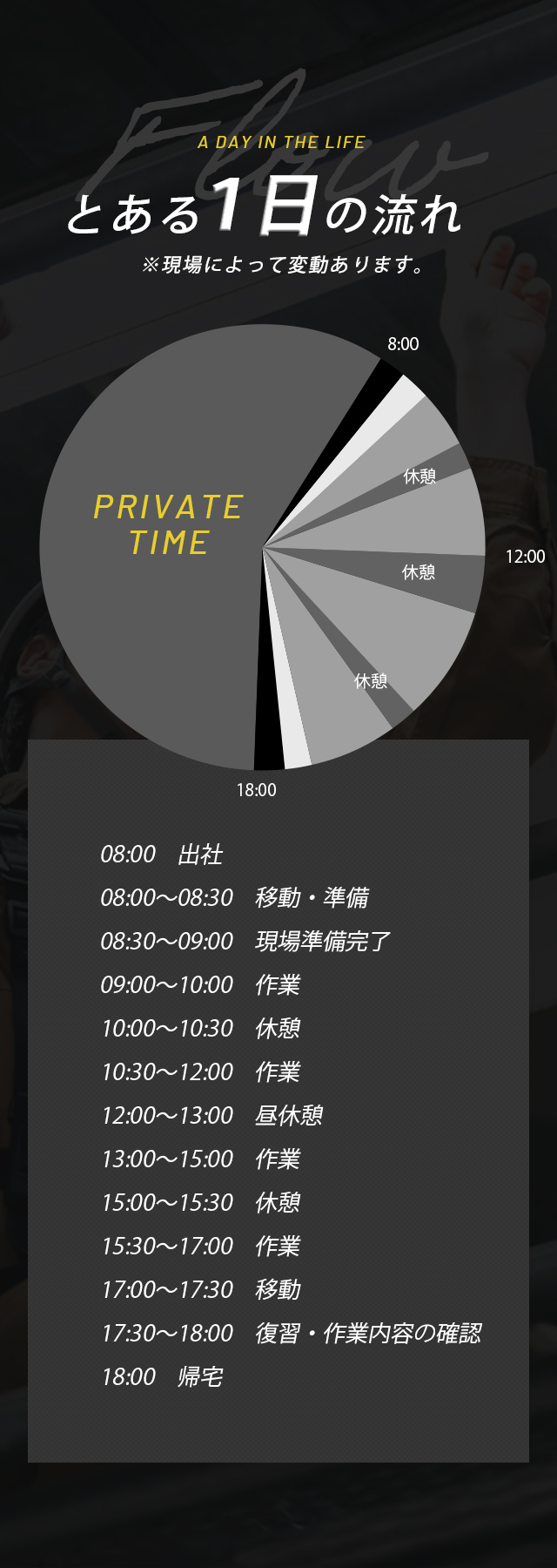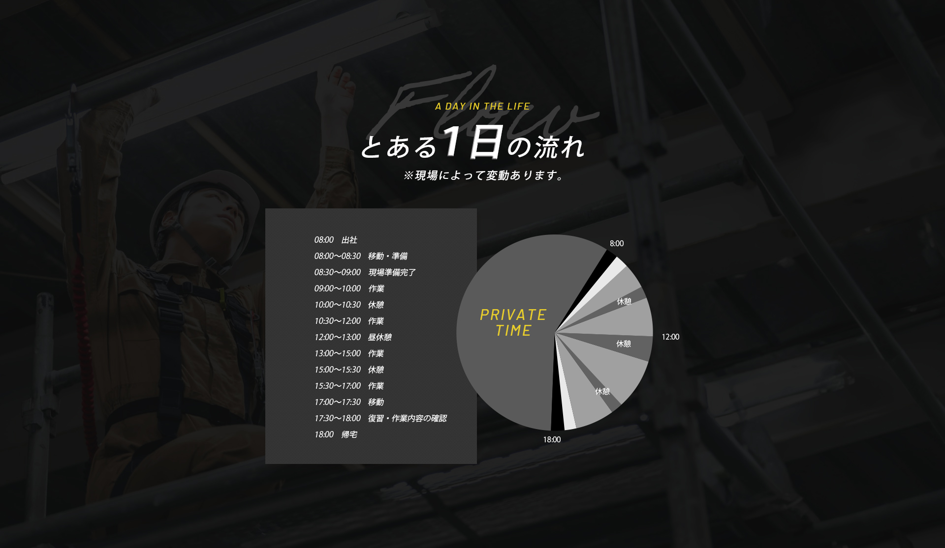 当社では、制服支給制度を導入しております。現場での安全性を確保し、統一感のある作業環境を整えるために、作業着や安全靴、ヘルメットなど必要な制服一式を会社が支給いたします。入社時に支給されるため、個人で準備する手間や費用は不要です。常に清潔で機能的な作業服を着用していただけます。働きやすさと安心を両立した職場づくりを大切にしています。